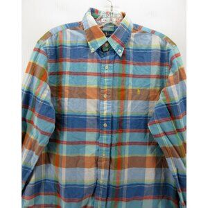 Ralph Lauren Shirt Medium Indian Madras Plaid Yellow Pony Button Down