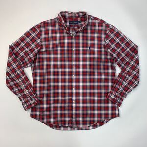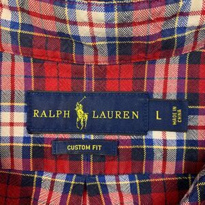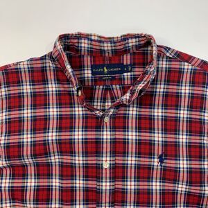Ralph Lauren Shirt Men L Large Custom Fit Red Plaid Cotton Long Sleeve Shirttail