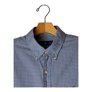 Ralph Lauren Shirt Men Large Blue White Checked Button Down Career Preppy