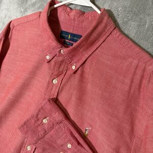 Ralph Lauren Shirt Men Size 2XL Washed Red Button Oxford Flesh Pony Long Sleeve