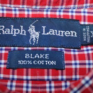 Ralph Lauren Shirt Men XL Blue Red White Blake Check Button Down Short Sleeve
