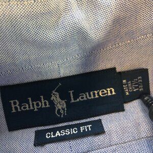 Ralph Lauren Shirt Mens 17.5 32 33 Blue Chambray Classic Fit Long Sleeve Vintage