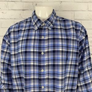 Ralph Lauren Shirt Men's 2XB Big Long Sleeve Button Down Blue Plaid Pony