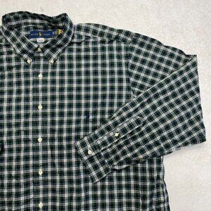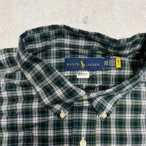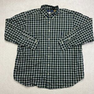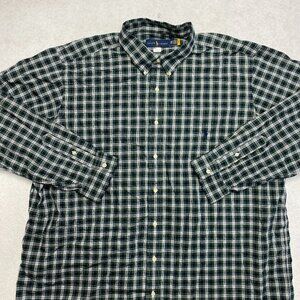 Ralph Lauren Shirt Men's 2XB Green Blue Plaid Long Sleeve Button Down Tartan Big
