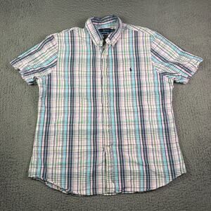Ralph Lauren Shirt Mens 2XL Multicolor Plaid Slim Fit Seersucker Short Sleeve