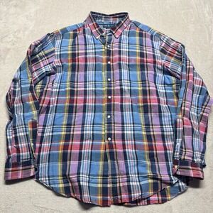 Ralph Lauren Shirt Mens 2XL Plaid Linen Blend Button Up Long Sleeve Classic Fit