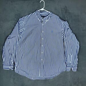 Ralph Lauren Shirt Mens 2XL Blue White Striped Button Down Long Sleeve Polo Classic