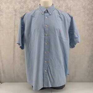 Ralph Lauren Shirt Mens 3XB Green Blue Check Classic Fit Short Sleeve Button