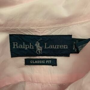 The product is a Ralph Lauren men's shirt in size 4XLT, designed with a classic fit and short sleeves. The shirt features a solid pink color with button-down closure and a collared neckline. Made from cotton fabric, this button-up shirt is machine washable and suitable for travel or casual occasions. It also has embroidered accents and is lightweight, breathable, and suitable for all seasons. The shirt embodies a classic and preppy style, perfect for men who value timeless fashion.