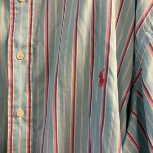 Ralph Lauren Shirt Mens 4XLT Teal Pink Blue Stripe Pony Cotton Button Up Preppy