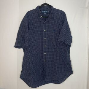 Ralph Lauren Shirt Mens Blue XL Short Sleeved Button Down Tattersall Check Blake