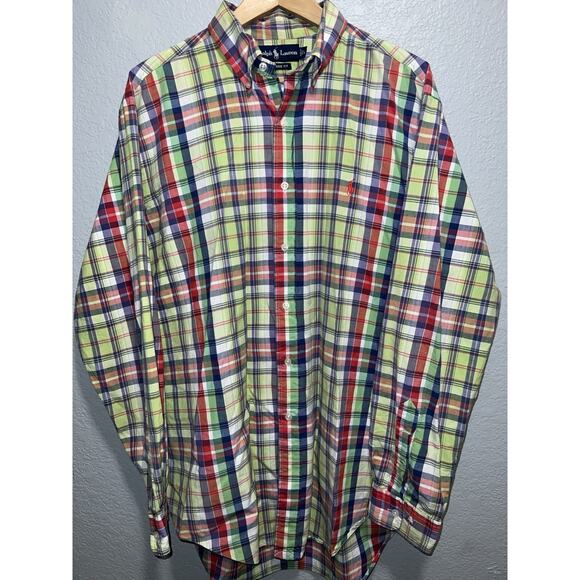 Ralph Lauren Shirt Mens Extra Large Classic Fit Plaid Oxford Long Sleeve Shirt