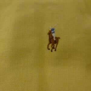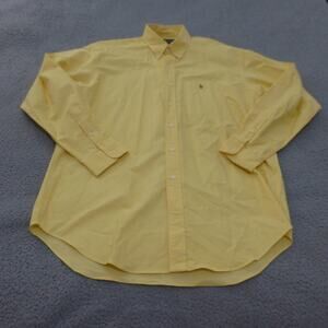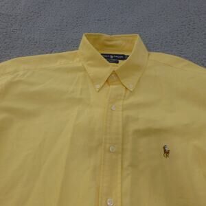 Ralph Lauren Shirt Mens Large Blake Button Up Yellow Flesh Pony Preppy Cotton. Good preowned condition. Light mark on sleeve. See pics for measurements and details.