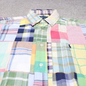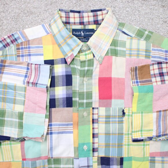 Ralph Lauren Shirt Mens Large Blake Patchwork Madras Short Sleeve Cotton Button
