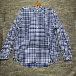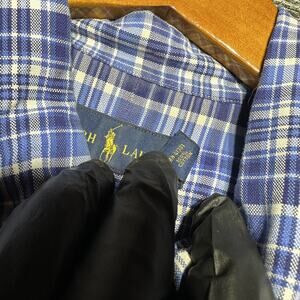 Ralph Lauren Shirt Men's Large Blue Plaid Long Sleeve Button Down Brown Pony