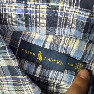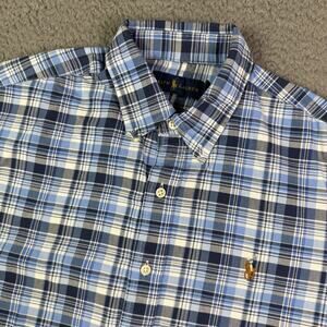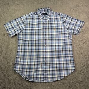 Ralph Lauren Shirt Mens Large Blue Plaid Oxford Button Down OCBD Short Sleeve