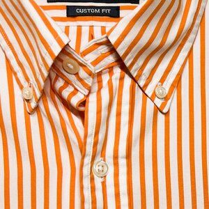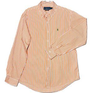 Ralph Lauren Shirt Men's Large Button-Down Orange-White Pinstriped