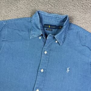 Ralph Lauren Shirt Mens Large Indigo Blue Oxford Button Down OCBD Lightweight