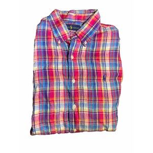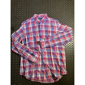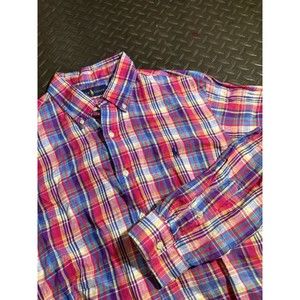 Ralph Lauren Shirt Mens Large Lined Long Sleeve Button Up Plaid LENIN 100%