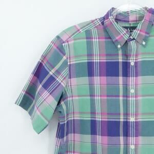 Ralph Lauren Shirt Mens Large Multicolor Plaid Classic Fit Short Sleeve Preppy