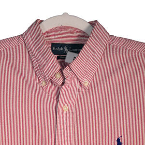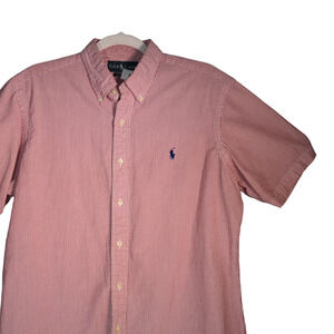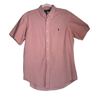Ralph Lauren Shirt Mens Large Pink Seersucker Blue Pony Striped Cotton Top