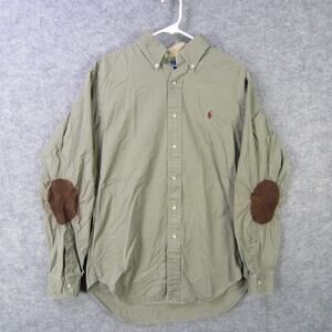 Ralph Lauren Shirt Mens Medium Green Classic Fit Button Down Elbow Patch Preppy