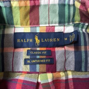 Ralph Lauren Shirt Mens Medium Multicolor Plaid RL Untucked Fit Button-Down Pony