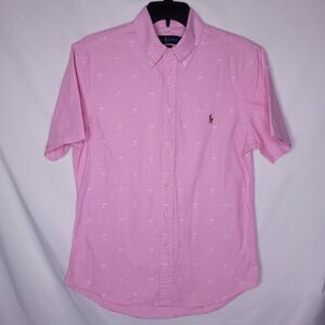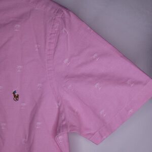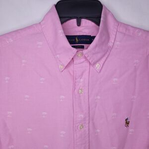 Ralph Lauren Shirt Mens Medium Pink Palm Tree Oxford Slim Fit Cotton