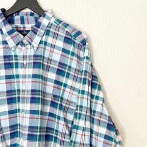 Ralph Lauren Shirt Mens Oxford Button Down Blue Plaid 100% Cotton Size 4XB