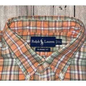 Ralph Lauren Shirt Men’s Size XL Orange White Check Plaid Button Up Classic Fit