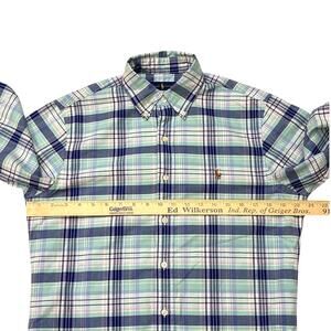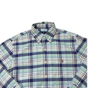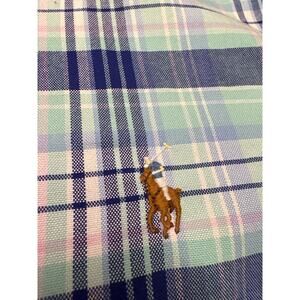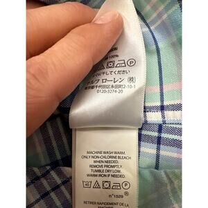 Ralph Lauren Shirt Mens Small Blue Twill Plaid Button Up Long Sleeve Flesh Pony