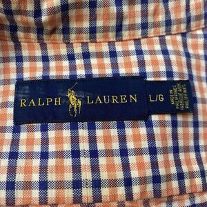 Ralph Lauren Shirt Mens Sz L Orange Blue Check Button Down Classic Fit Pony Used