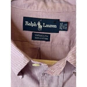 Ralph Lauren Shirt Mens XL 17 1/2 NeckPink White Plaid Dress Classic Fit Preppy