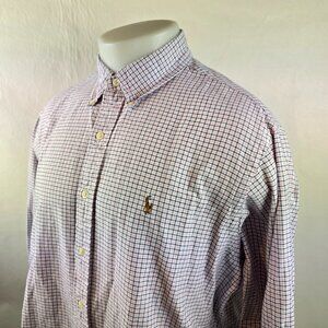 Ralph Lauren Shirt Mens XL Pink Plaid Button Up Dress Custom Fit Preppy Pony 124