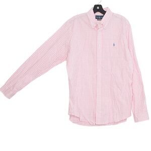 Ralph Lauren Shirt Preppy Classic Nautical Button Long Sleeve Plaid Pink Large
