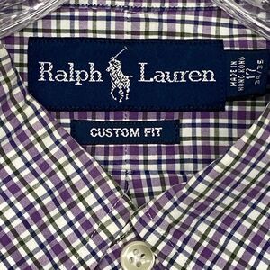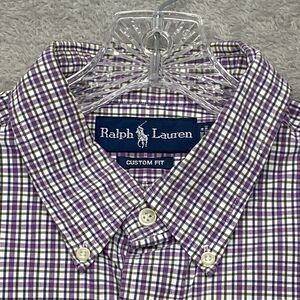 Ralph Lauren Shirt Size 17 Mens Purple Check Button Down Custom Fit
