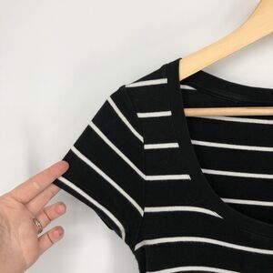 Ralph Lauren Shirt Womens Medium Black Stripe Short Sleeve Scoop Neck Casual Top