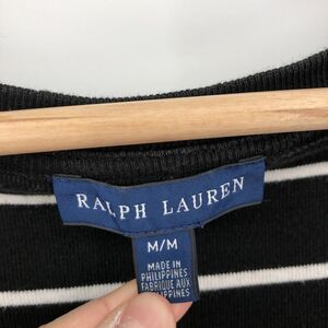 Ralph Lauren Shirt Womens Medium Black White Striped Short Sleeve Crewneck Cotton
