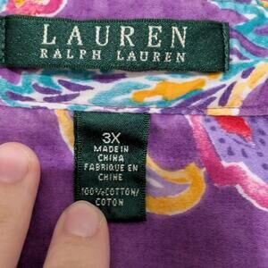 Ralph Lauren Shirt Women's Size 3X Purple Yellow Whimsical Cotton Button Down