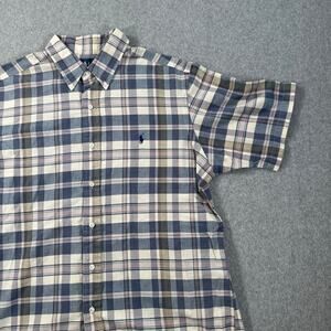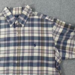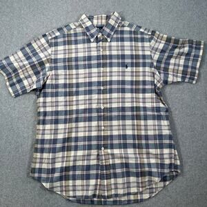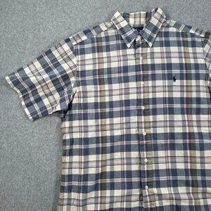 Ralph Lauren Short Sleeve Button Down Shirt Men's Large Classic Fit Blue Plaid