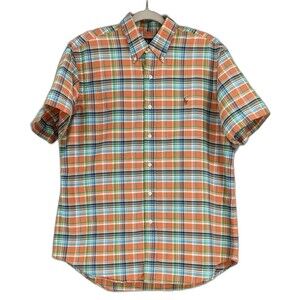 Ralph Lauren Short Sleeves Orange Plaid Button Down Shirt Size Large