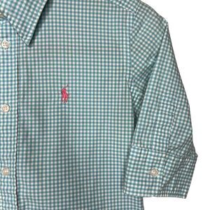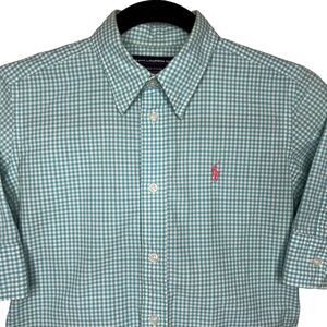 Ralph Lauren Size 2 Sport Super Slim Fit Shirt Blue White Gingham Button Front