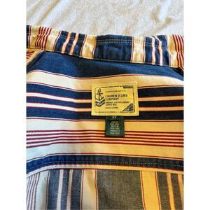 Ralph Lauren Size 2XL Women Striped Denim Naval Chore Nautical Jacket Vintage. Shirt is in excellent like new condition. Look at measurements before purchasing. Due to lighting color may vary. Smoke free home. I tried to get the best pictures to show the condition of the item. Once you have purchased item NO RETURNS OR NO EXCHANGES. Any further questions or offers contact me. Thank you and God Bless.