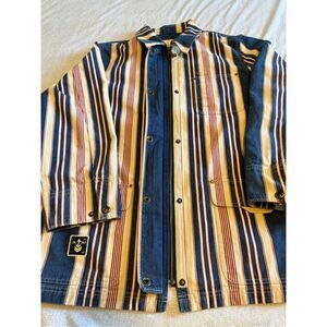 Ralph Lauren Size 2XL Women Striped Denim Naval Chore Nautical Jacket Vintage