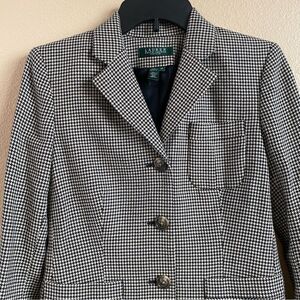 Ralph Lauren Size 4P 100% Wool Black and Cream Houndstooth Blazer Career Work