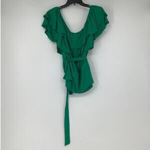 Ralph Lauren Size XL Green Off Shoulder Peplum Top Ruffle Linen Blend OS27-29