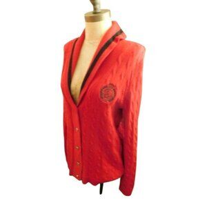 Ralph Lauren Size XL Red Black Cableknit Cardigan Sweater