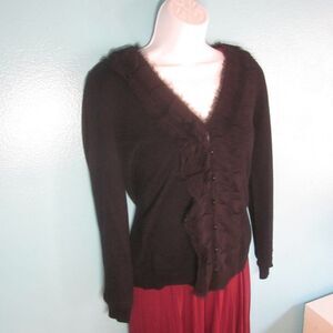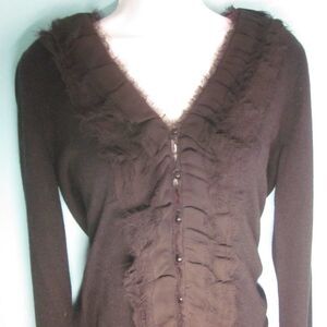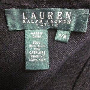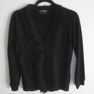 Ralph Lauren Size PM Black Silk & Cashmere Cardigan w/ Silk Eyelash Trim