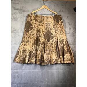 Ralph Lauren Skirt Women 22 Brown Tan Linen Floral Aline Midi Preppy Classic NEW