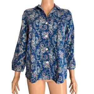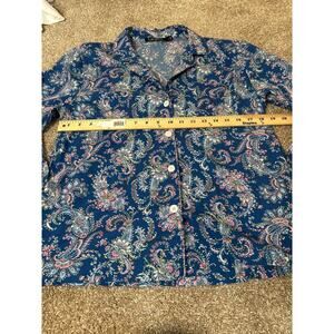 Lauren Ralph Lauren Sleep Shirt Pajama top Embroidered Logo Paisley Blue SZ M